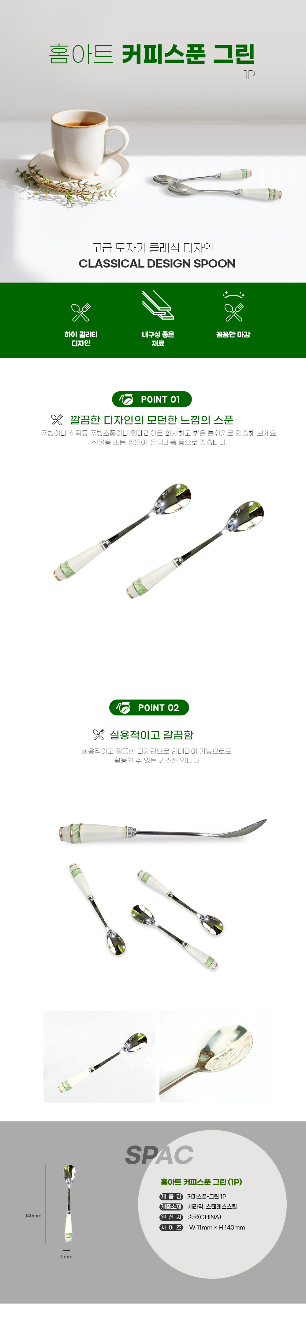 • (홈아트) 티스푼 커피스푼-그린 (1P)